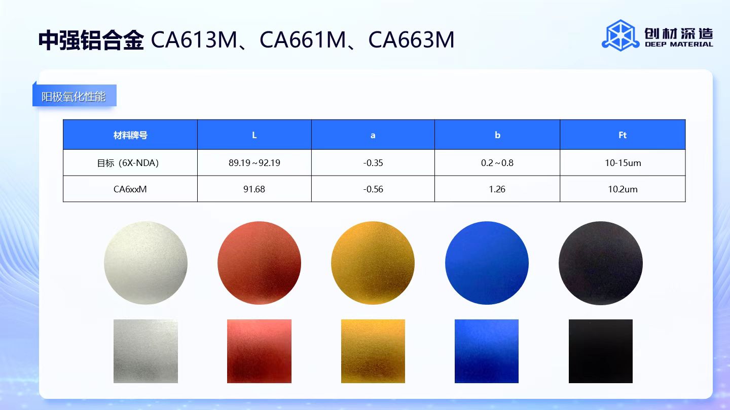 針對3C電子領(lǐng)域的中強(qiáng)鋁合金家族包括CA613M、CA661M和CA663M三款產(chǎn)品,成功解決傳統(tǒng)6系鋁合金打印開裂問題,熱處理后抗拉強(qiáng)度可達(dá)450MPa,延伸率不低于11%,陽極氧化效果卓越,室溫?zé)釋?dǎo)率高達(dá)217 W/(m*K),常規(guī)價(jià)350元/公斤,年內(nèi)價(jià)格280元/公斤,為消費(fèi)電子外觀件制造提供全新選擇。