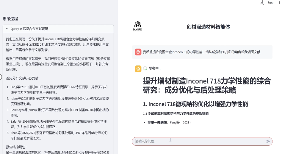 發(fā)布會(huì)的另一大亮點(diǎn)是Deep Material自主研發(fā)的材料智能體(DM Agent)。這一軟硬件一體化解決方案具備文獻(xiàn)分析、成分優(yōu)化、工藝優(yōu)化、實(shí)驗(yàn)分析和對比迭代的全流程能力,實(shí)現(xiàn)了材料研發(fā)的智能化閉環(huán)。