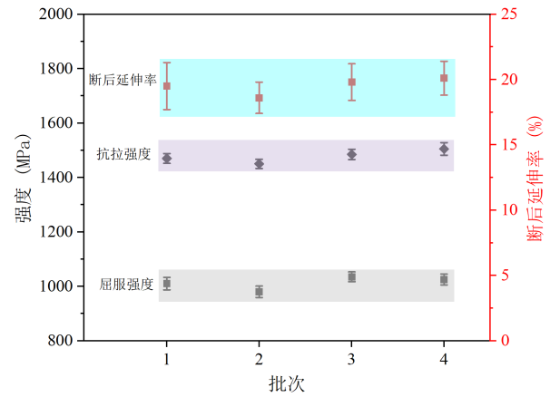 熱處理態(tài)樣品室溫拉伸性能批次穩(wěn)定性